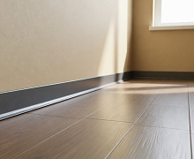 Особенности монтажа: алюминиевый плинтус крепится к стене на жидкие гвозди . Для оформления внутренних и наружных углов используется специальная алюминиевая фурнитура или запил под 45 градусов.