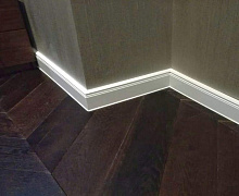 Немецкий плинтус Дёллькен из ХДФ на древесноволокнистой основе перекроет зазор между стеной и полом до 19мм.