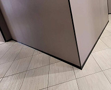 Особенности монтажа: алюминиевый плинтус крепится к стене на жидкие гвозди . Для оформления внутренних и наружных углов используется специальная алюминиевая фурнитура или запил под 45 градусов.