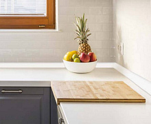 Способ монтажа: плинтус для столешницы из вспененного ПВХ состоит из двух частей - основания и декоративной части. Основание крепится к поверхности на жидкие гвозди или саморезы к стене или столешнице. Далее сверху надевается декоративная часть. Торцы оформляются при помощи специальной фурнитуры, подходящей под цвет плинтуса.